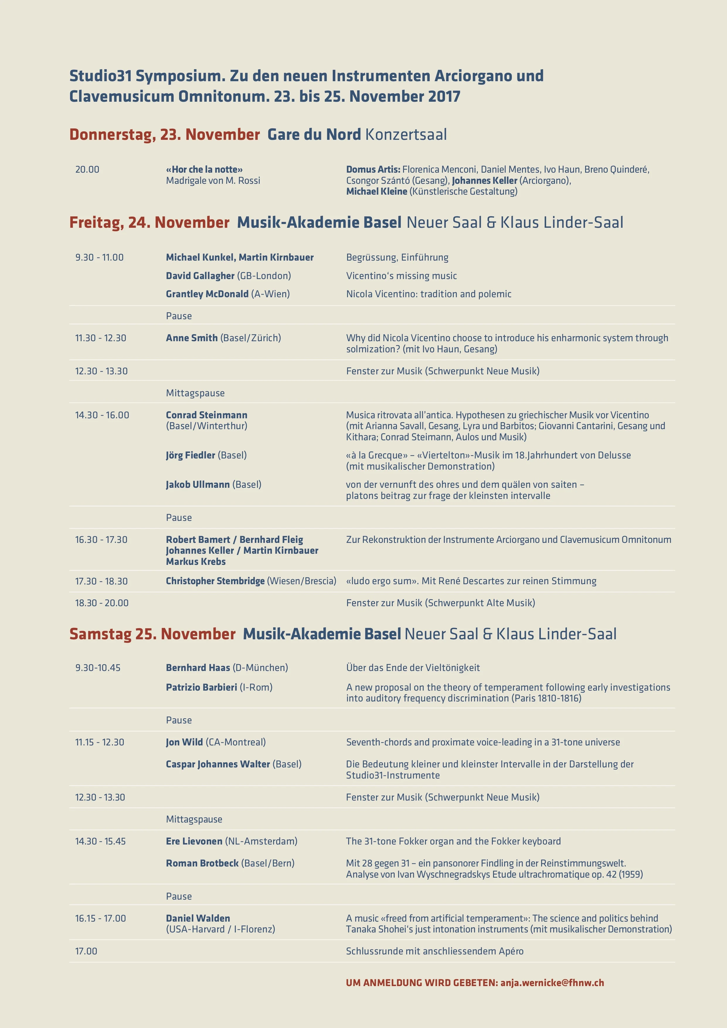 In November 2017, Studio31 organised an international symposium, to present and discuss the results of a 2-years research project hosted at the Hochschule für Musik Basel in collaboration with the Schola Cantorum Basiliensis.